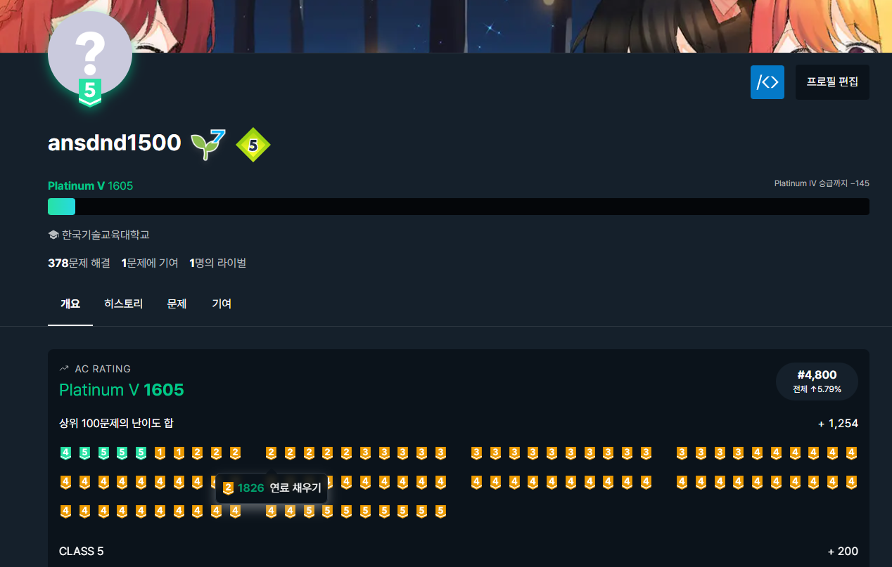 백준을 시작한지 223일 만에 플레5 달성했다!