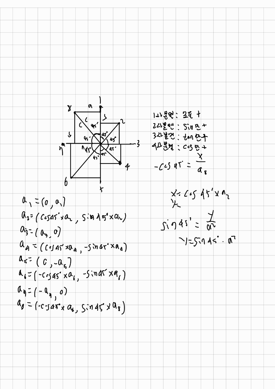 x좌표는 cos45 = x/a_i, x = cos45 * a_i